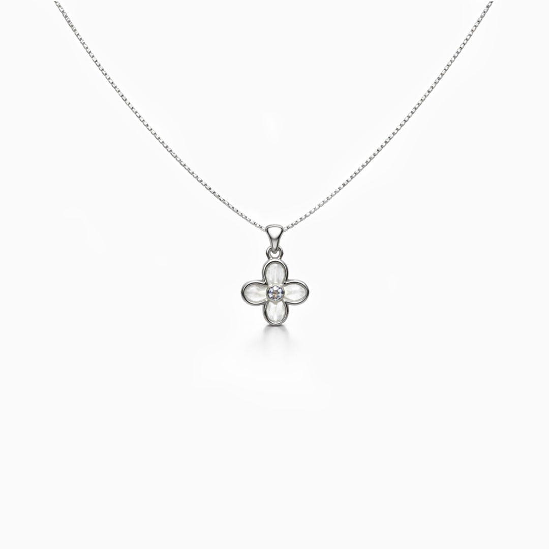 Four Petal Clover Silver Chain Necklace